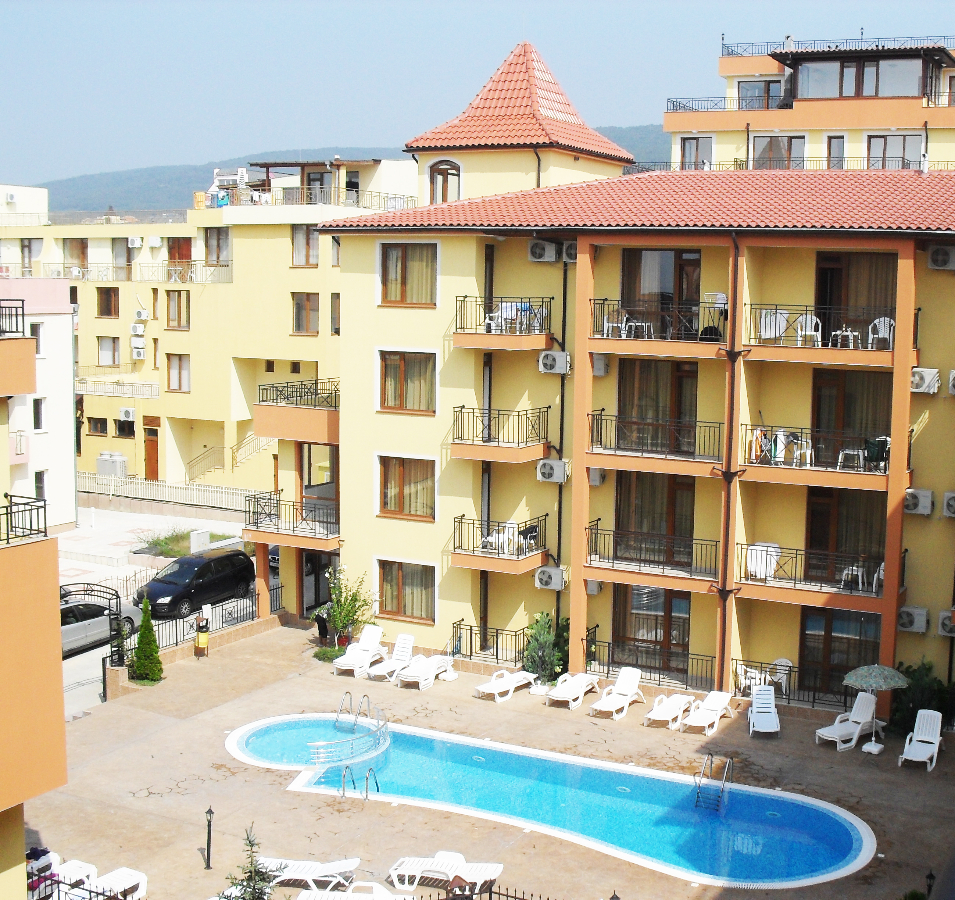 Apartamenty Rosiek w kompleksie Siana, położone są 200 metrów od plaży w miejscowości Sveti Vłas w Bułgarii. Do dyspozycji oddajemy 3 klimatyzowane i bogato wyposażone mieszkania położone na 5 kondygnacji budynku z windą. Jednocześnie dysponujemy bazą noclegową dla 14 osób: 1 sześcioosobowy i 2 czteroosobowe lokale mieszkalne. Nasze apartamenty posiadają jeden wspólny taras o powierzchni ok. 130 m2, z którego można podziwiać piękny widok na zatokę, port w Svety Vlazie oraz Słoneczny Brzeg jak również na zabytkowe miasto Nesebar. Taras okalający cały budynek, wyposażony jest w meble ogrodowe oraz markizy.